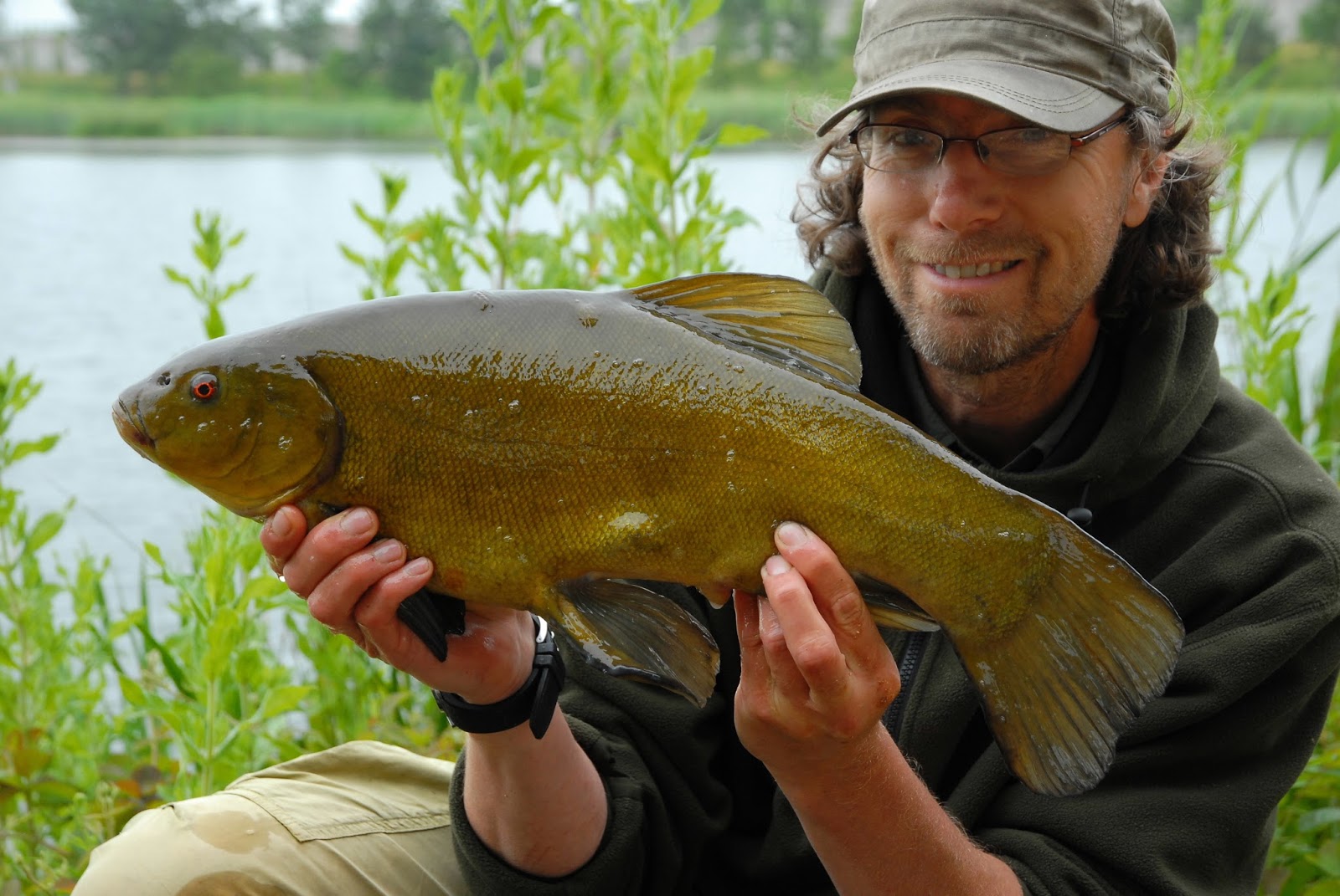 O ja, graskarpers! De pest is, het worden er steeds minder (in de polders) en de moeite om ze te vinden en ook nog eens te vangen steeds groter. In armoede (toch wel) maar eens teruggegaan naar een poldersysteem waarvan ik inmiddels wist dat ik er eigenlijk te laat was, en ook nu een grasser gevangen, maar geen gehoopt onbekend monster. In tegendeel, deze vis was al drie keer gevangen. De eerste keer een jaar of vier geleden gevangen door vismaat John. Diens vismaat van de dag schatte de vis op 'tegen de meter en hoog in de 20 pond'. Ach ja, laten we maar zeggen 'enthousiast'... Ik had graag gewild dat het zo was, maar dat haalde deze niet. Vismaat Daav had het al beter voor elkaar bij de 2de vangst met 94 cm en laag in de twintig pond en dat bleek nog steeds te kloppen. Niet dat ik niet tevreden was, maar ik besefte eens te meer dat de monsters van weleer er niet meer waren... een gevoel. En nee hij of zij komt niet uit het slootje op de achtergrond:-). En dat alles tegen beter weten in qua toch gaan vissen, want de dag ervoor was de temperatuur drastisch gedaald, voor alle vissen in de zomer wel positief, maar niet voor onze grassers.